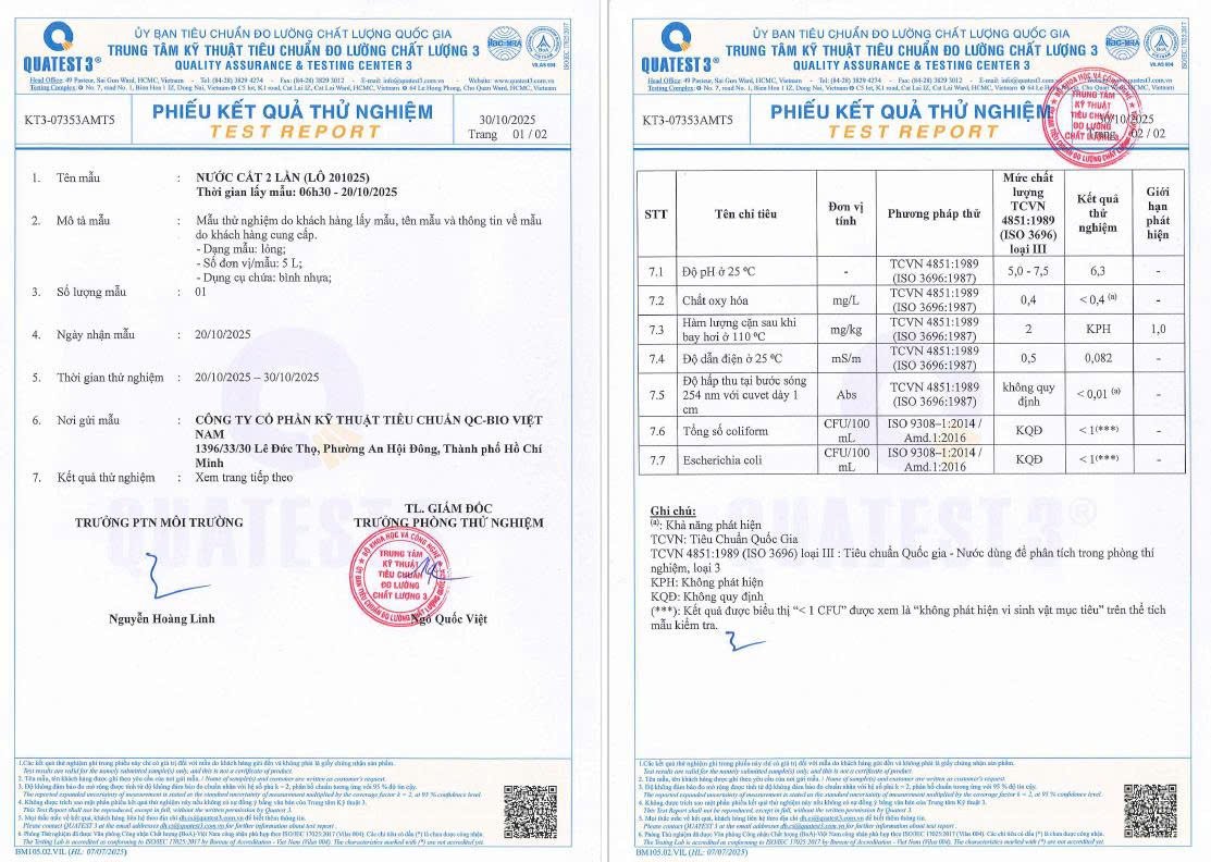Tại QCBIO, giá nước cất được công bố minh bạch theo từng dung tích và số lượng đặt hàng. Khách hàng doanh nghiệp, bệnh viện, phòng thí nghiệm có thể ký hợp đồng định kỳ để được hưởng chính sách chiết khấu và hỗ trợ vận chuyển.